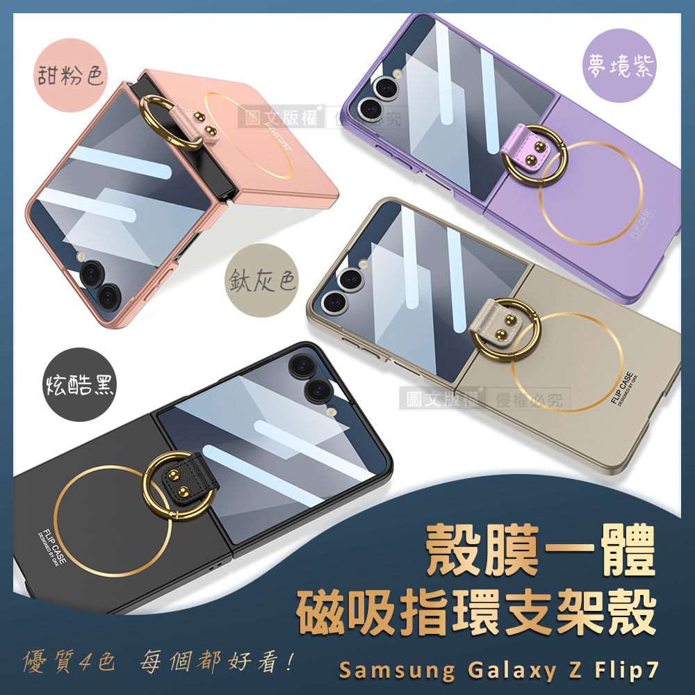 三星 Galaxy Z Flip7 殼膜一體 膚感磁吸指環支架殼+鋼化膜 手機殼(夢境紫)
