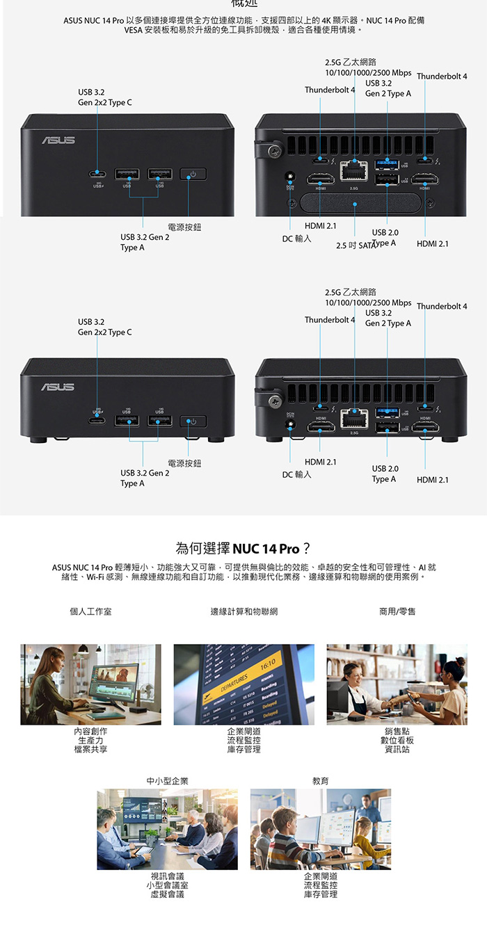 《ASUS 華碩》 RNUC14RVHU7068A9I Ultra 7 155H/16G+16G/512G+1TB HDD 桌上電腦/特仕版