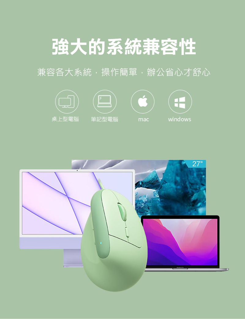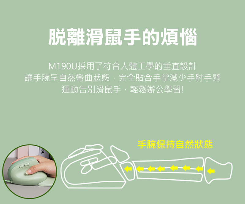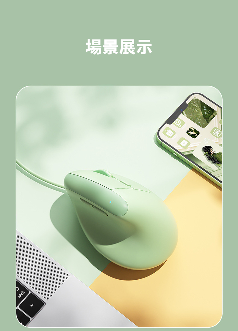 .採用符合人體工學的垂直設計,使手腕呈現自然彎曲狀態,完全貼合手掌