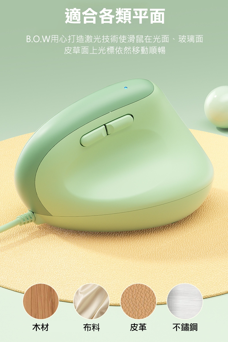 B.O.W M190U Pro 有線垂直滑鼠(奶咖色)