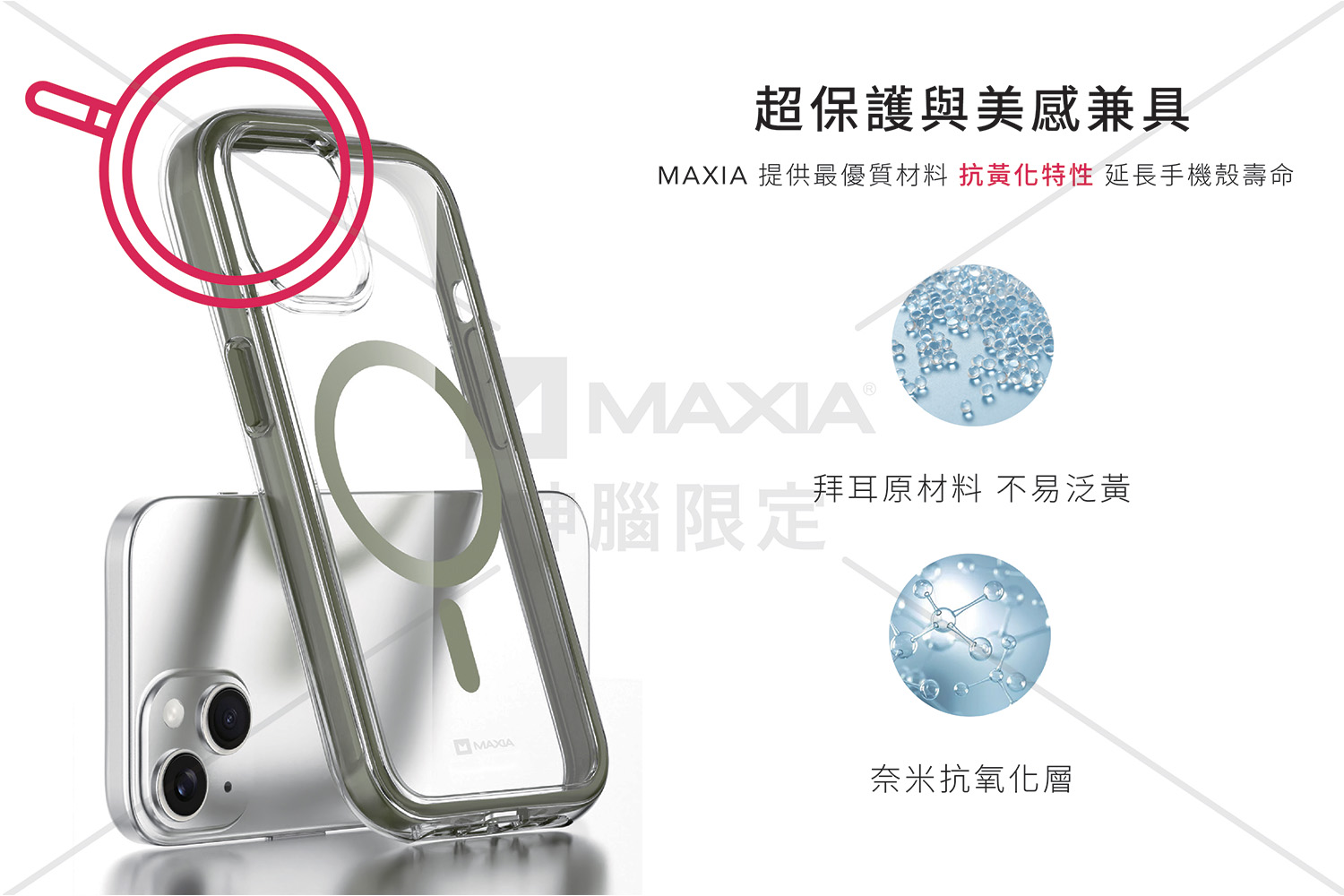 【MAXIA】【2入組】iPhone 15 Pro Max耐衝擊無線磁吸保護殼-淺灰(支援MagSafe)