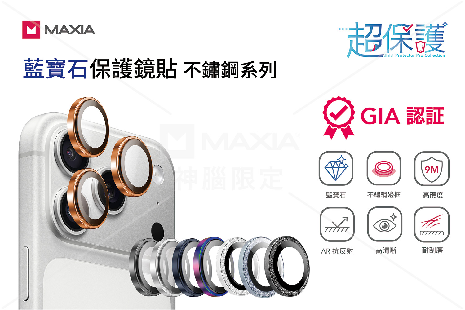 【MAXIA】iPhone 17 GIA 認證藍寶石不鏽鋼保護鏡頭貼-閃鑽