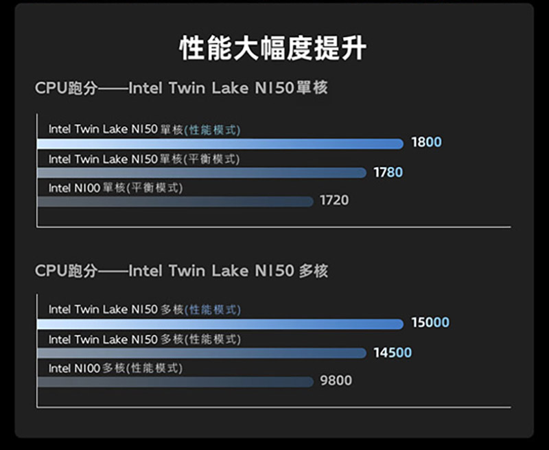 .Intel Twin Lake 處理器 N150 4核4執行緒 3.6GHz, 6W TDP, 6MB 快取記憶體