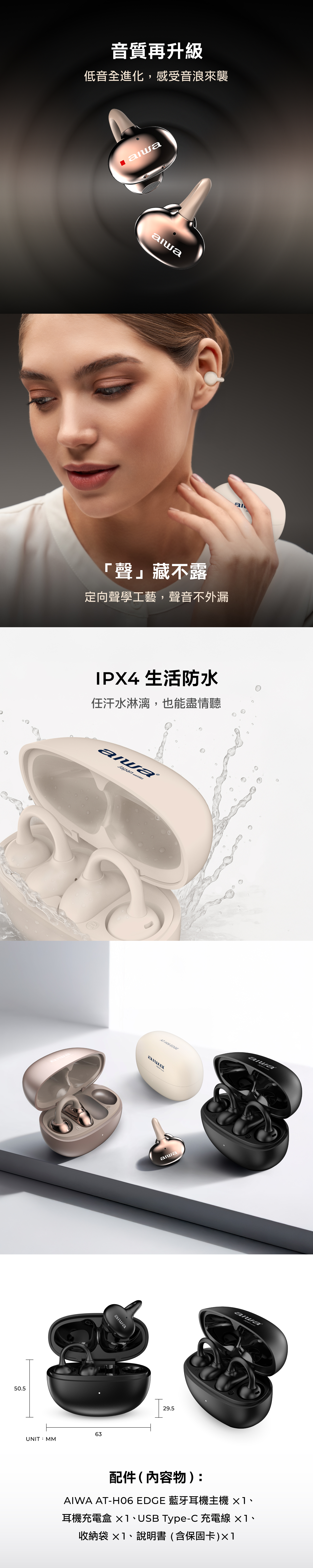 Aiwa 耳夾式真無線藍牙耳機AT-H06 EDGE 白色