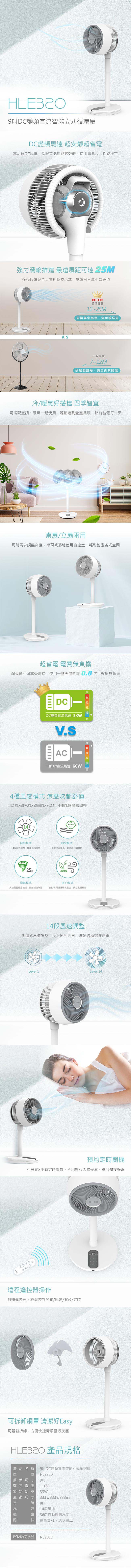 DIKE 9吋DC變頻直流智能立式循環扇 HLE320WT