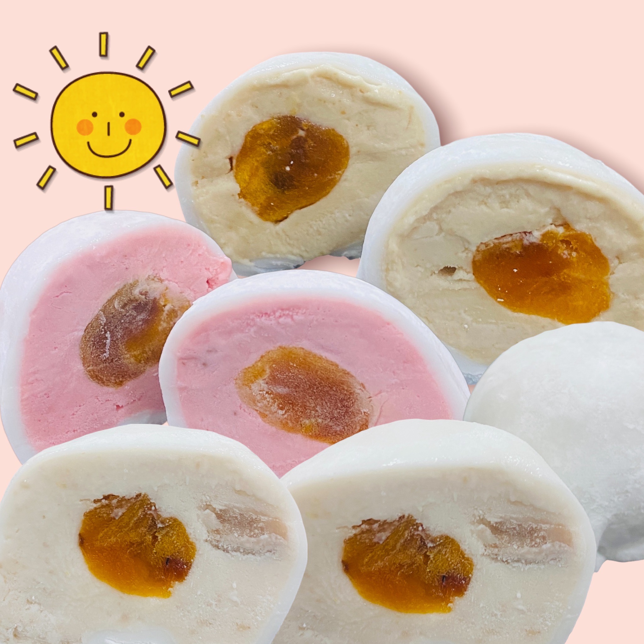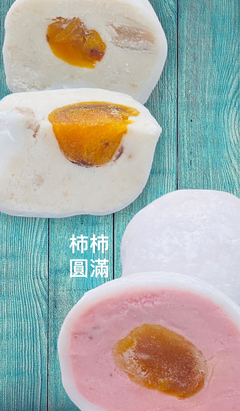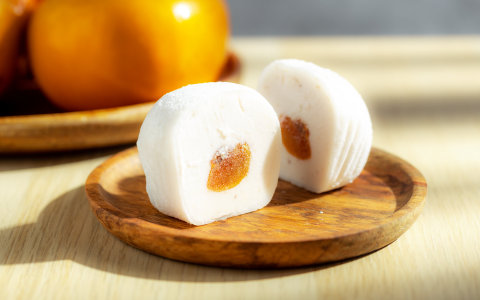 紅豔溏心柿餅果肉,佐以香醇絲滑風味冰淇淋,外層裹上彈Q麻糬皮,皮薄餡多,