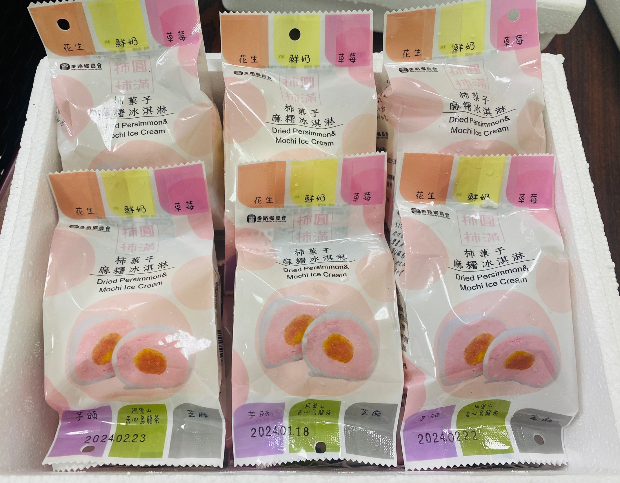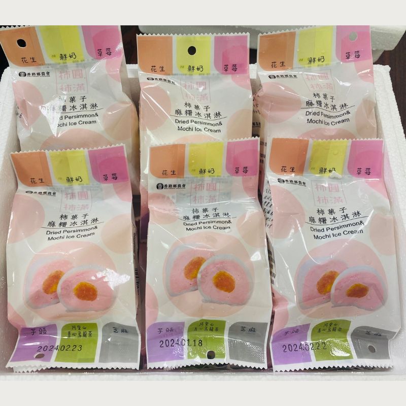柿餅麻糬冰淇淋口味多元(鮮奶、花生、草莓、芋頭、芝麻、阿里山青心烏龍茶等6種口味)