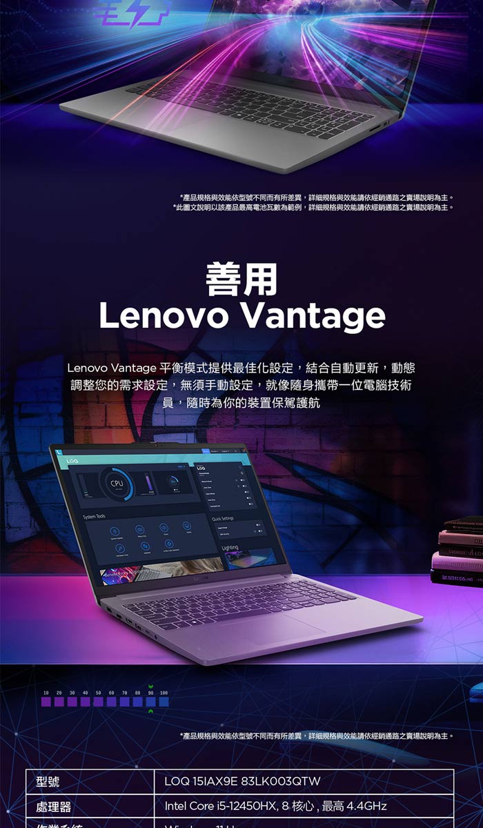 《Lenovo 聯想》LOQ 15IAX9E 83LK00C3TW(15.6吋FHD/i5-12450HX/16G/512G+512G/RTX4050/特仕版)