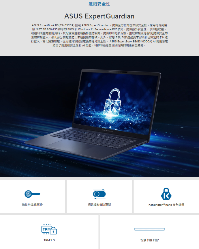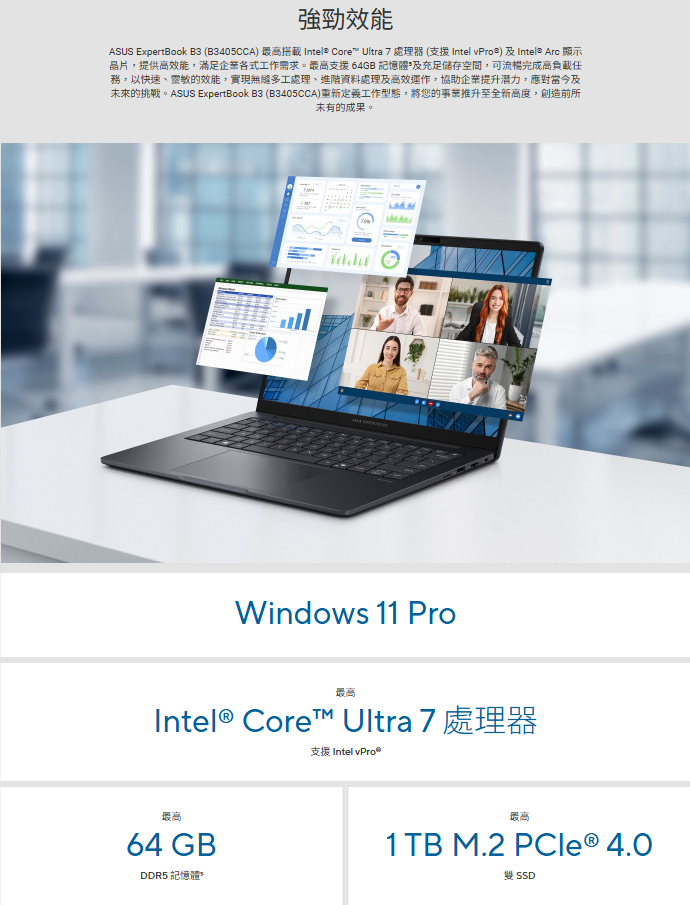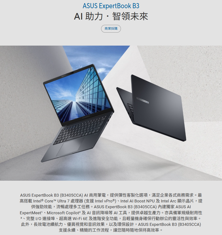 ASUS 華碩 B3405CCA-0291A125H (14"WUXGA/Ultra 5 125U/16G/1TB/W11P/3Y) 商用筆電 ai筆電