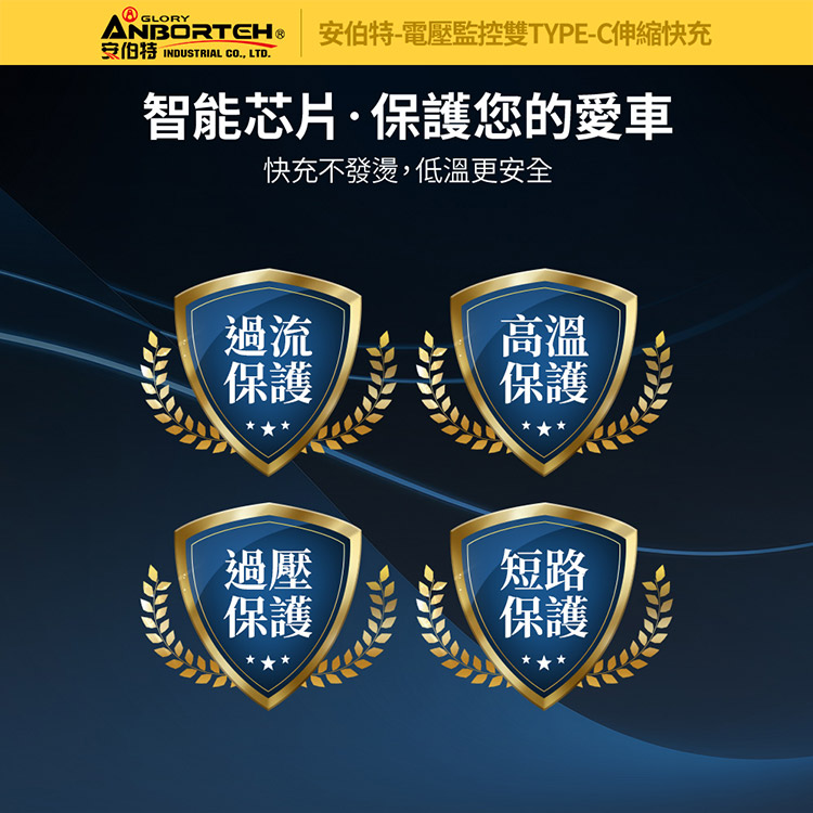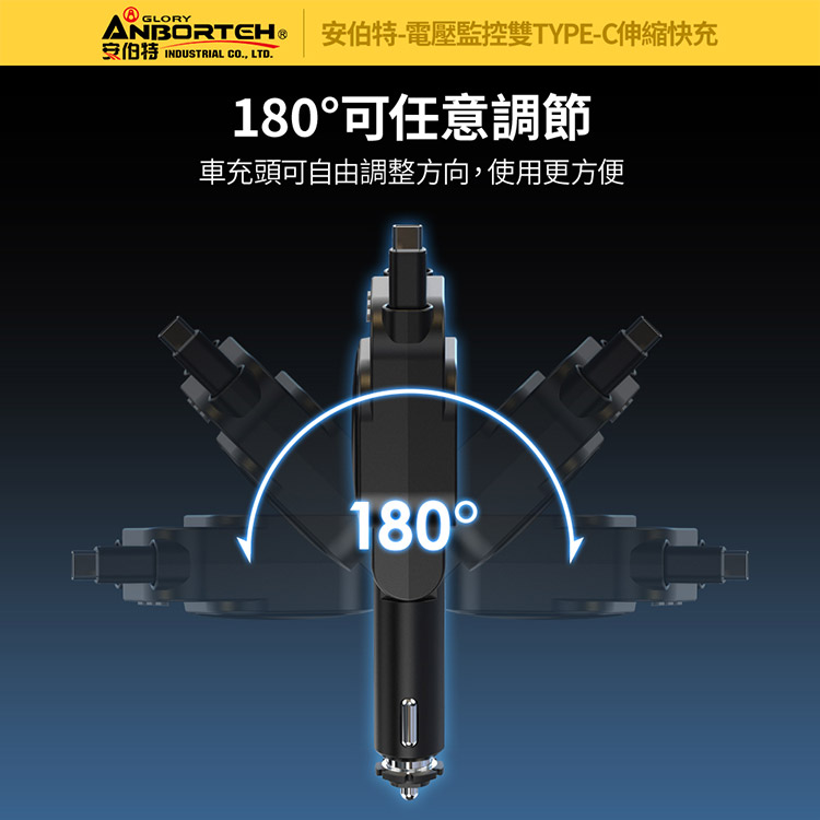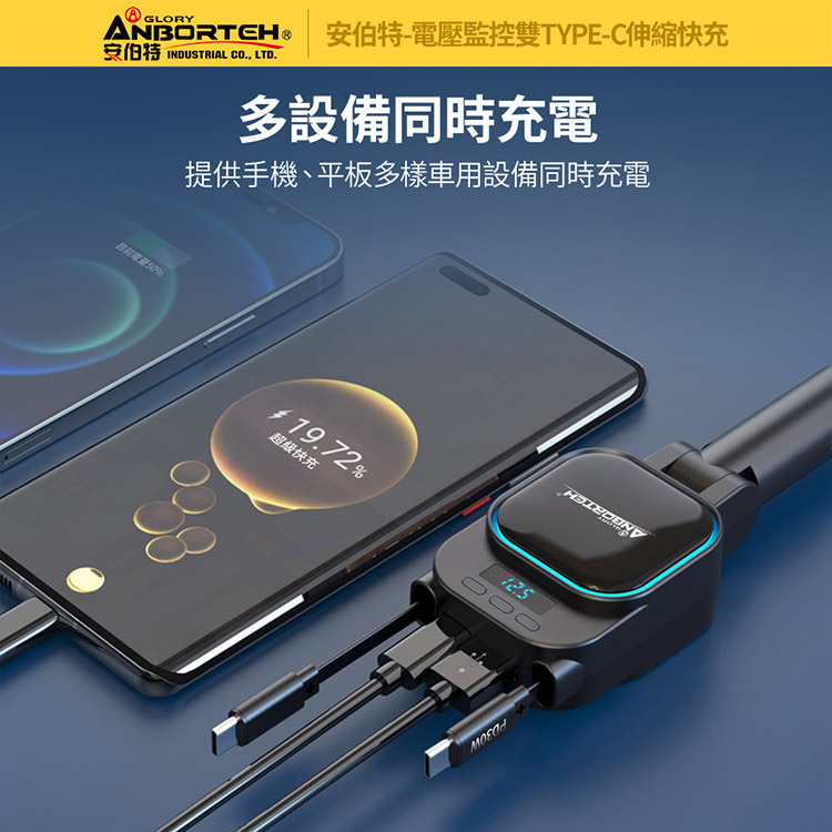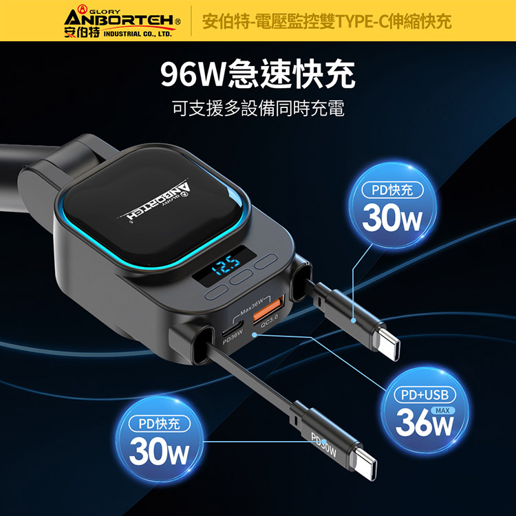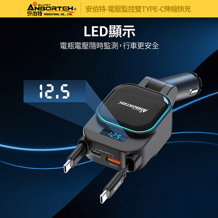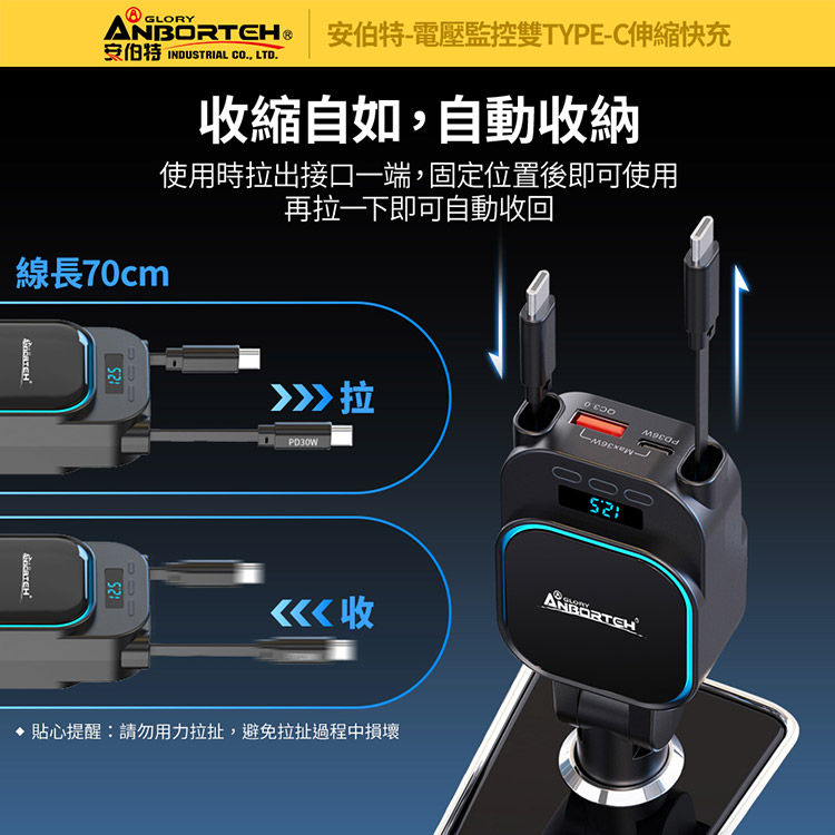 【安伯特】電壓監控雙TYPE-C伸縮快充(國家認證 一年保固)