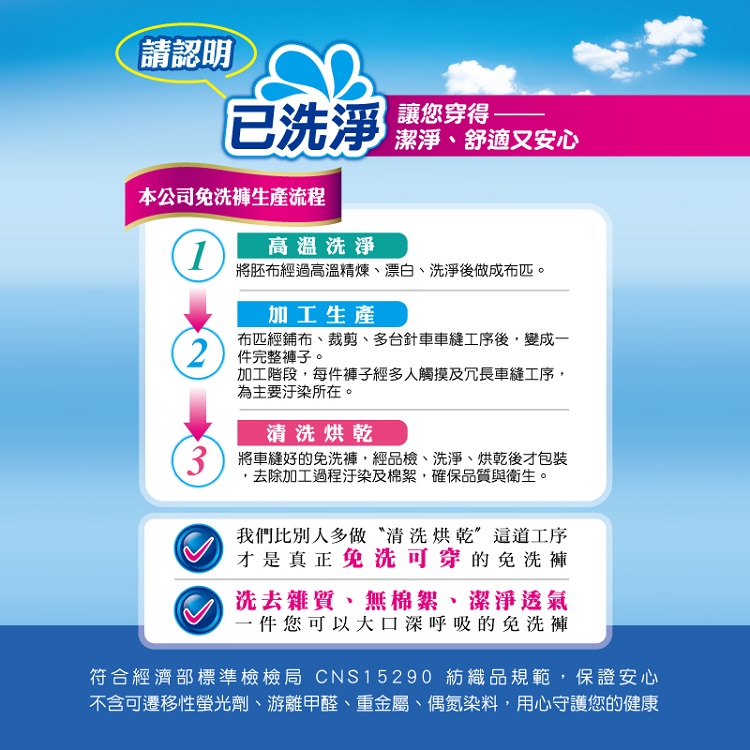 出廠前已清洗,真正清潔免洗褲。