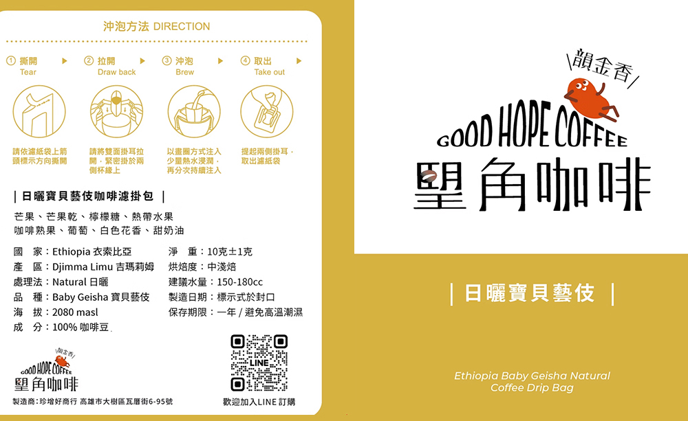 【 朢角咖啡 】日曬寶貝藝伎咖啡濾掛包25入(中淺焙)(25M0) 宅配券