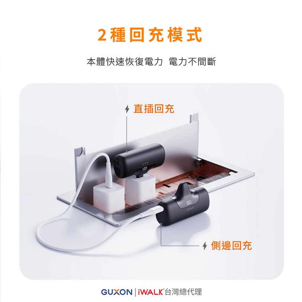 【iWALK】六代 Type-C 直插式口袋行動電源5500mAh(安卓/iPhone17適用)(有標示Wh)-夜黑