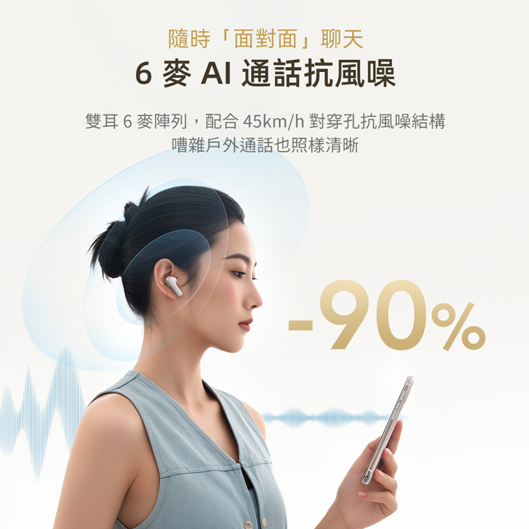 4種降噪場景,3 級深度靈活調整,因應不同環境、聽感更舒適