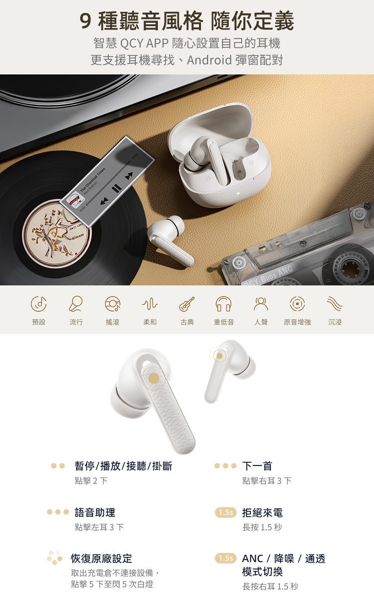 QCY Buds ANC(HT15)主動降噪真無線藍牙耳機-淺灰