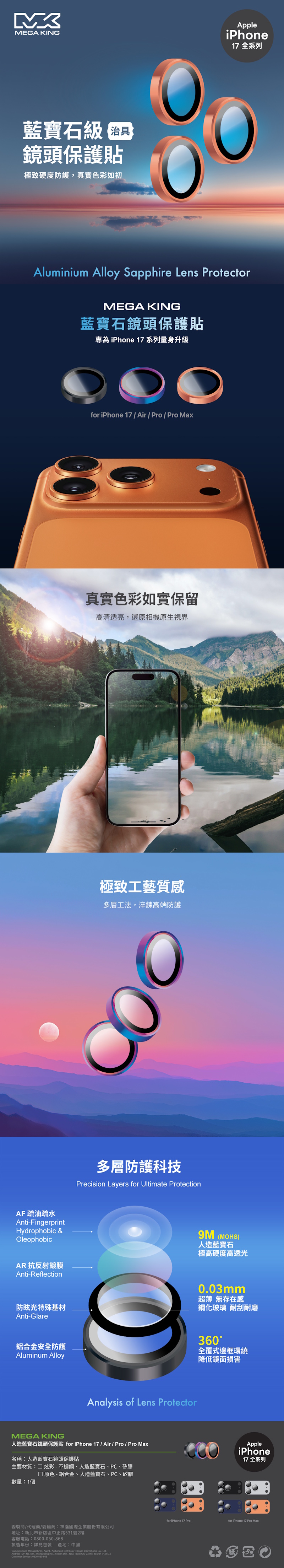 【中華員購】MEGA KING iPhone 17 Pro Max 一體藍寶石鏡頭貼