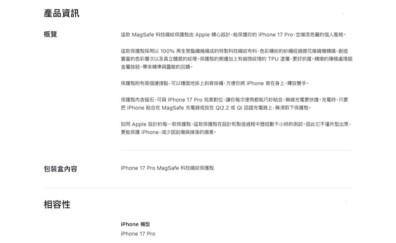 ★這款MagSafe科技織紋保護殼由Apple精心設計,能保護你的iPhone 17 Pro,並增添亮麗的個人風格