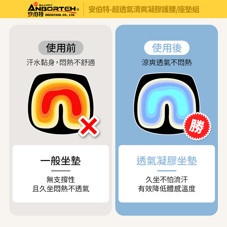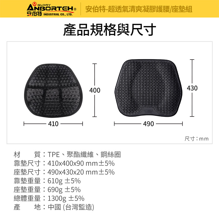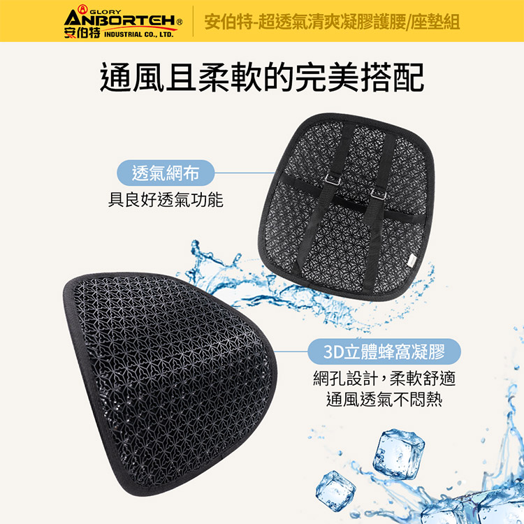 【安伯特】超透氣清爽凝膠組(護腰+座墊)