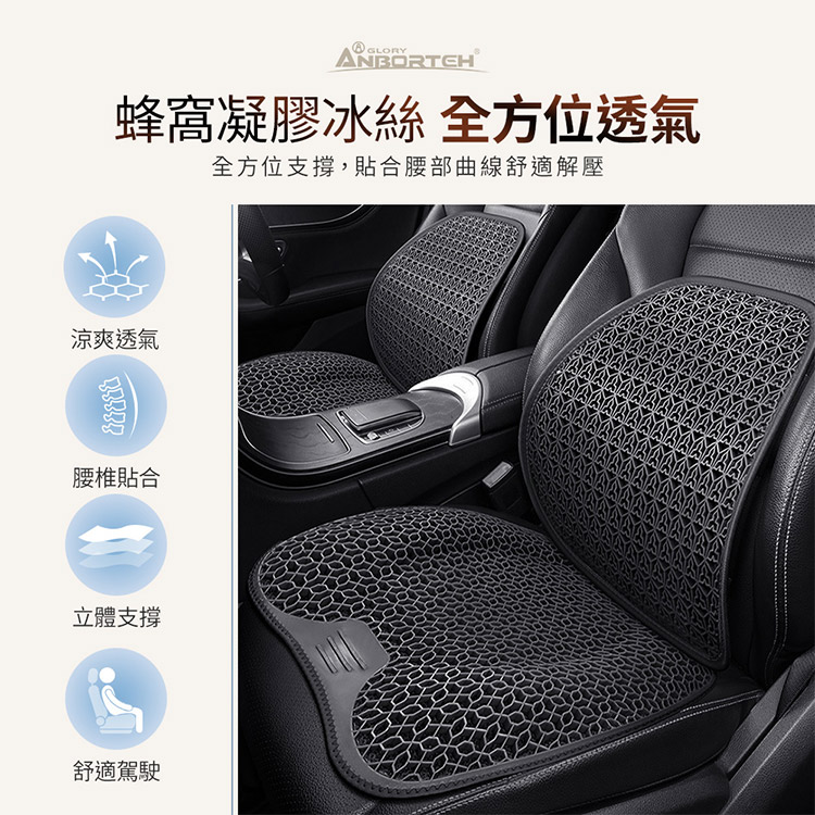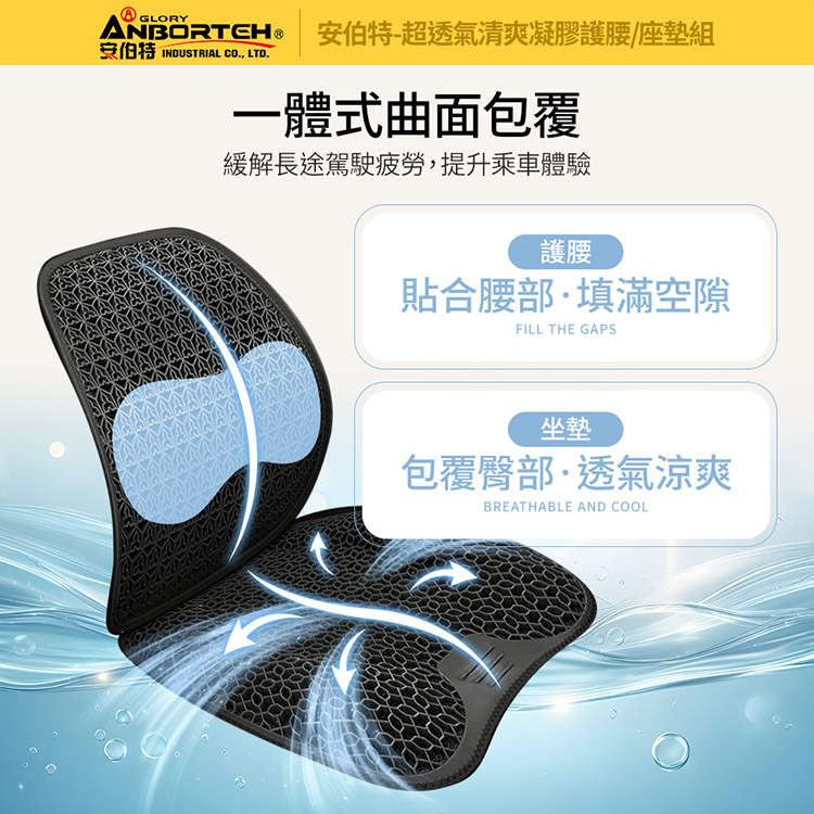 【安伯特】超透氣清爽凝膠組(護腰+座墊) 涼感座墊 汽車座墊 久坐不悶熱