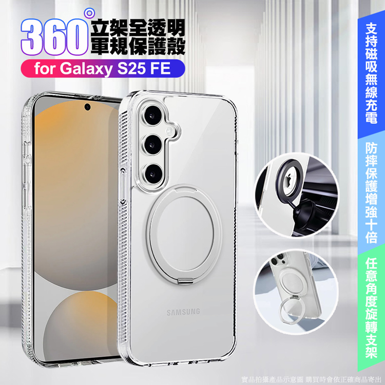 VOORCA Samsung Galaxy S25 FE 豔星磁吸360度立桇全透明軍規保護殼-透明