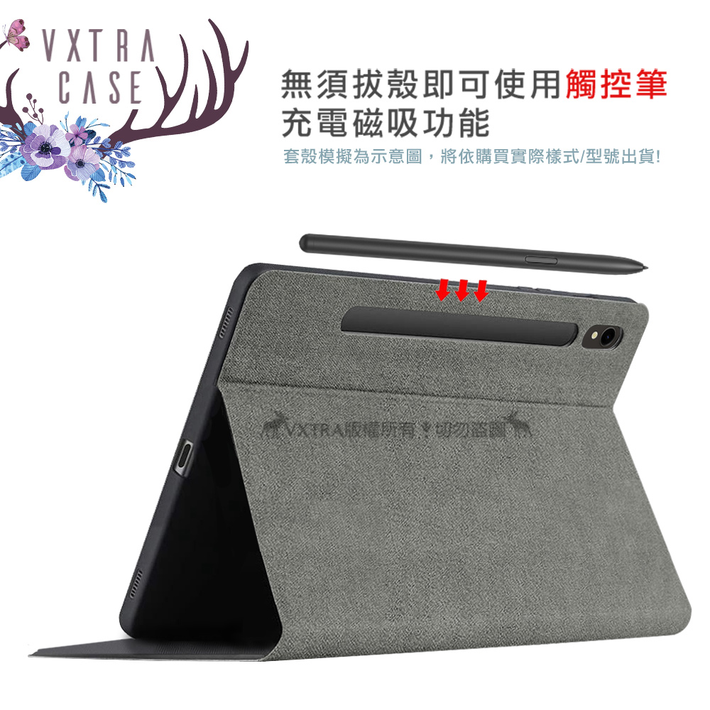 三星 Galaxy Tab S10 Lite 10.9吋 北歐鹿紋風格平板皮套 防潑水立架保護套(清水灰)