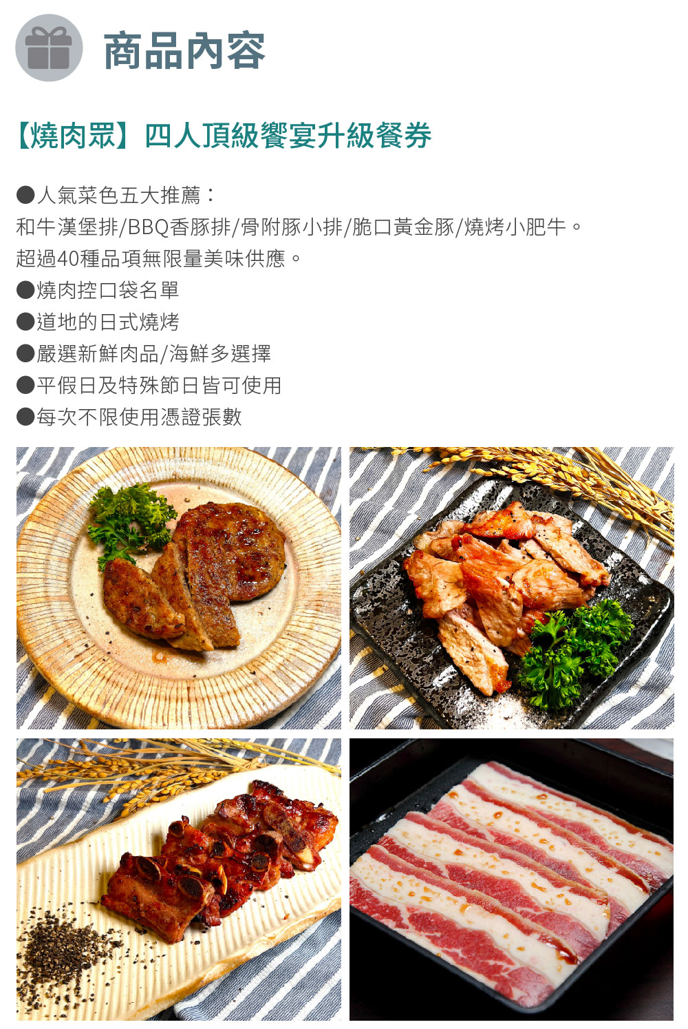全台多點日式燒肉【燒肉眾】四人頂級饗宴升級吃到飽餐券_平假日適用(MO)