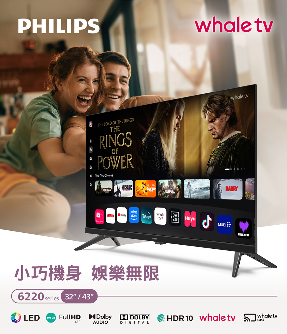 (送基本安裝)飛利浦 43吋FHD WhaleTV聯網液晶顯示器 43PFH6220