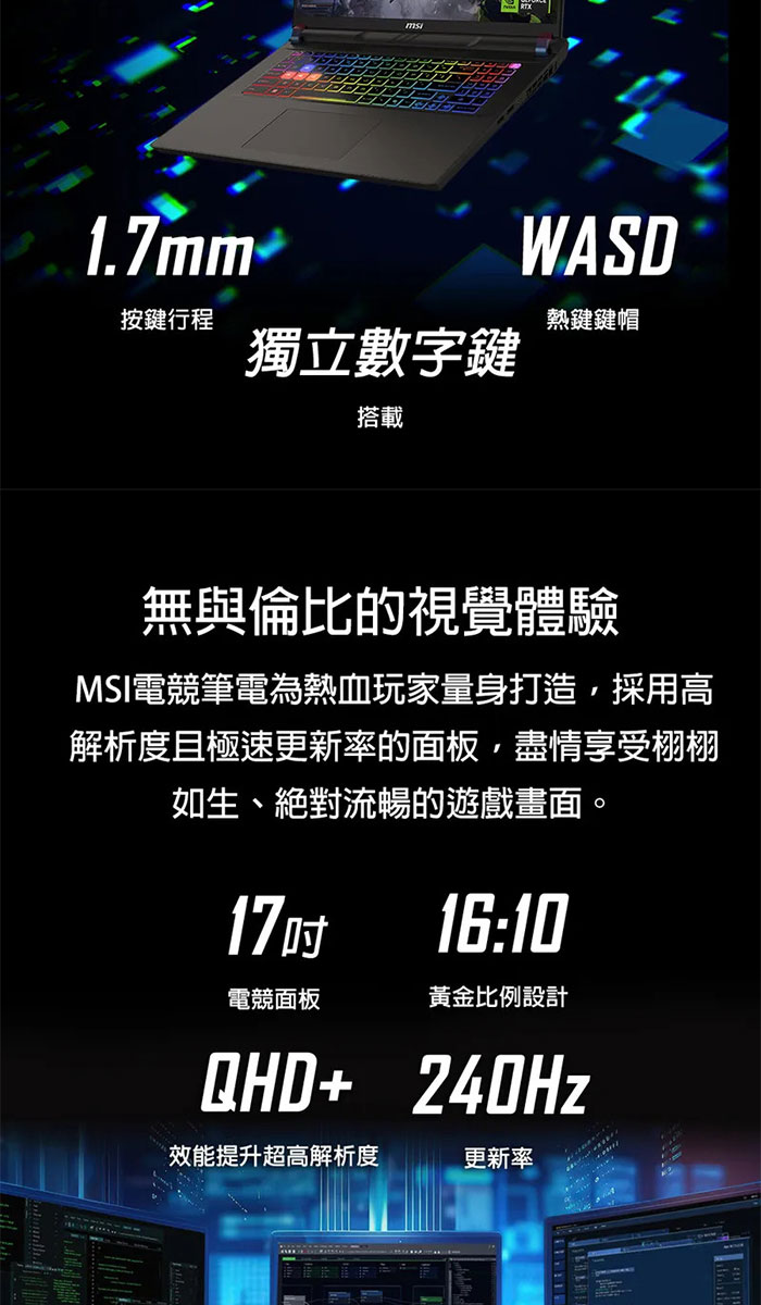 《MSI 微星》Vector 17 HX AI A2XWJG-066TW(17吋QHD+/U9 275HX/32+32G/1TB+1T/RTX5090/特仕版)