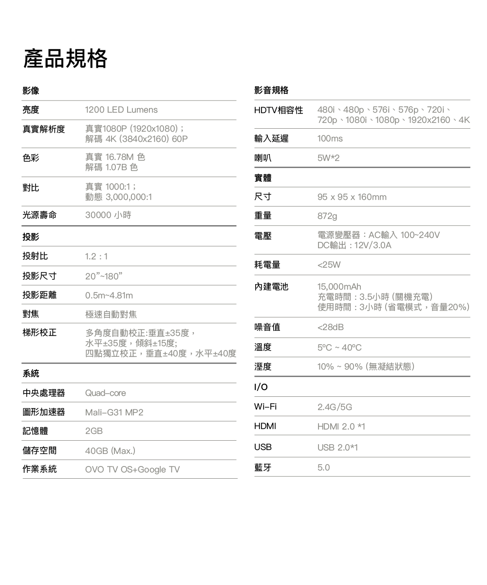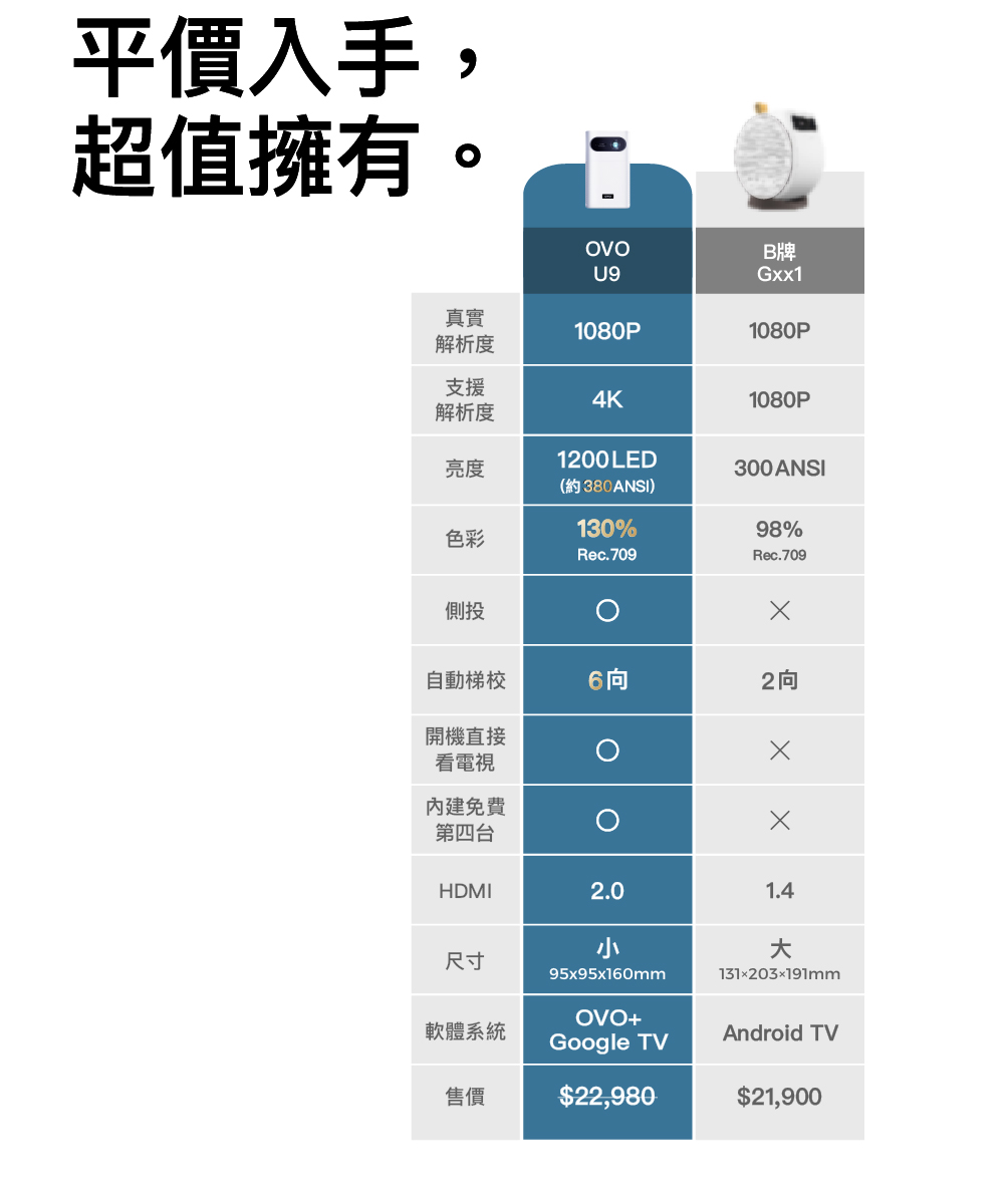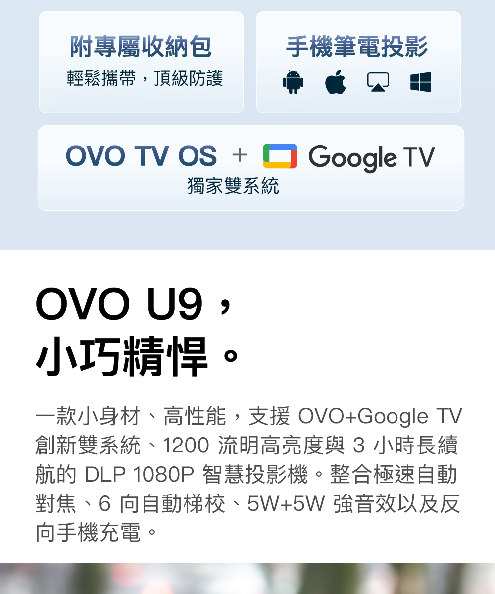 OVO 行動百吋劇院 智慧投影機U9*送四季線上+Friday影視30天