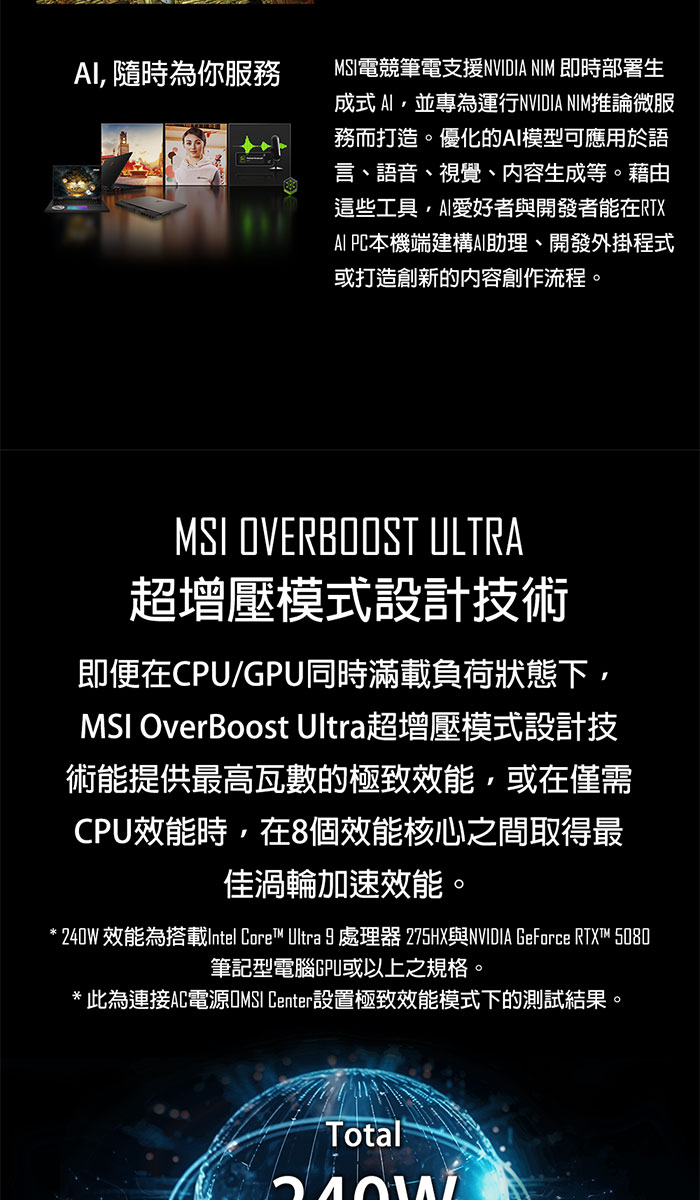 《MSI 微星》Vector 16 HX AI A2XWIG-014TW(16吋QHD+/U9 275HX/16G+32G/1T+2T/RTX5080/特仕版)