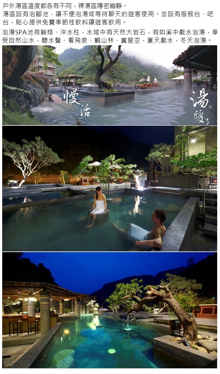 ●可使用典藏館迎賓飲料吧、戶外露天風呂、泳池