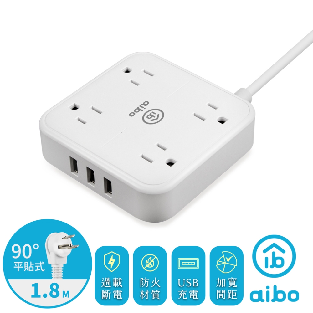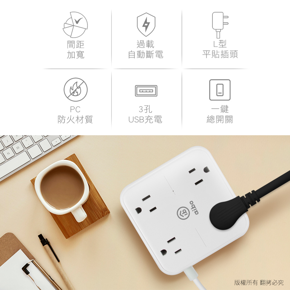 aibo 淨.極簡 3孔4插 USB延長線-1.8米