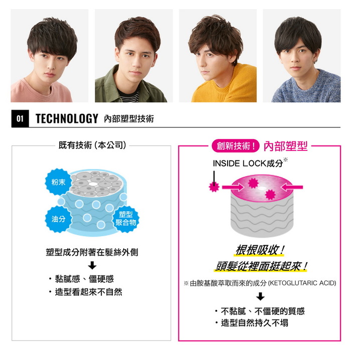 "胺基酸成分根根吸收,從頭髮裡面塑型,使用感不黏膩,持久不塌