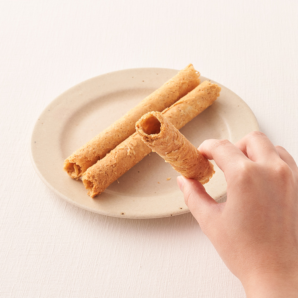 採用新東陽肉鬆與完美的蛋奶比例 ,製作過程不添加一點水,才能使蛋捲皮香味濃郁,口感酥脆。
