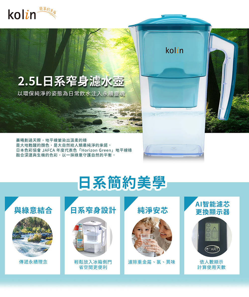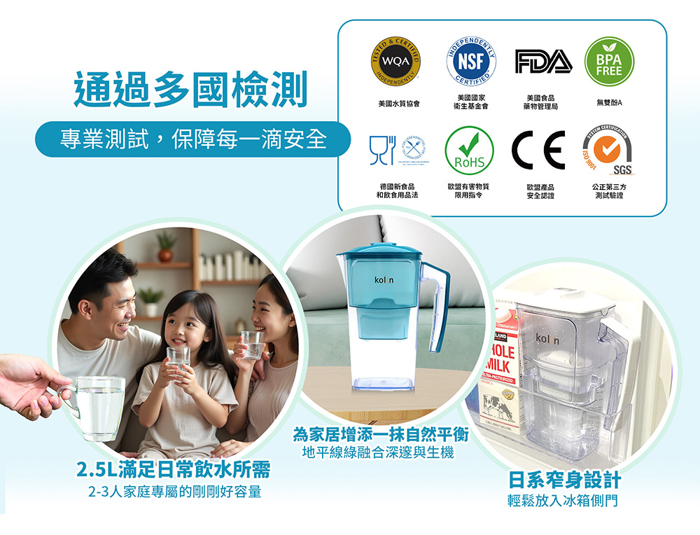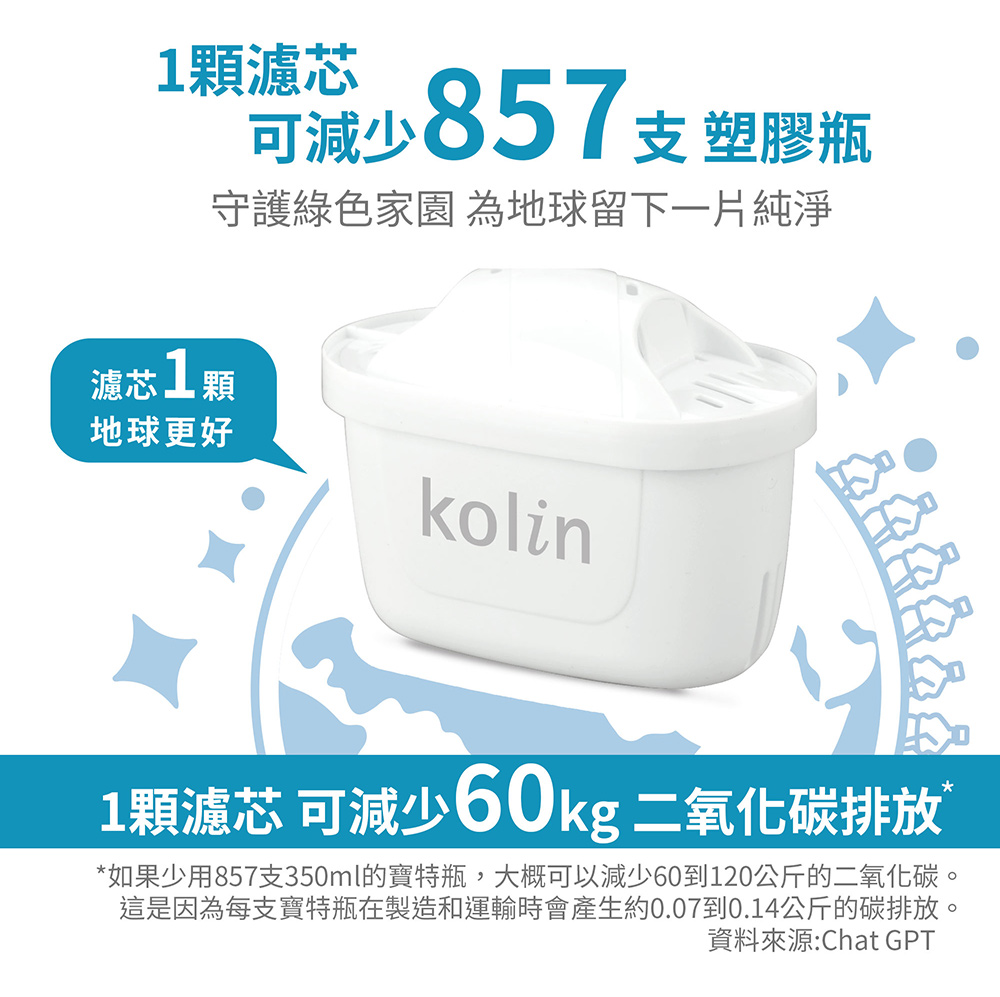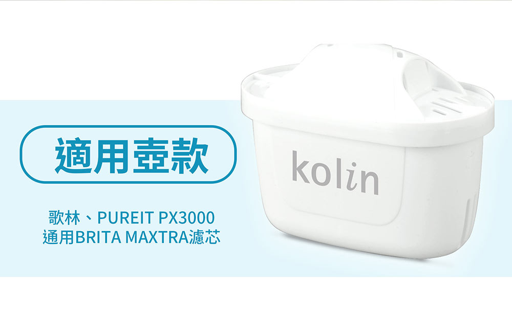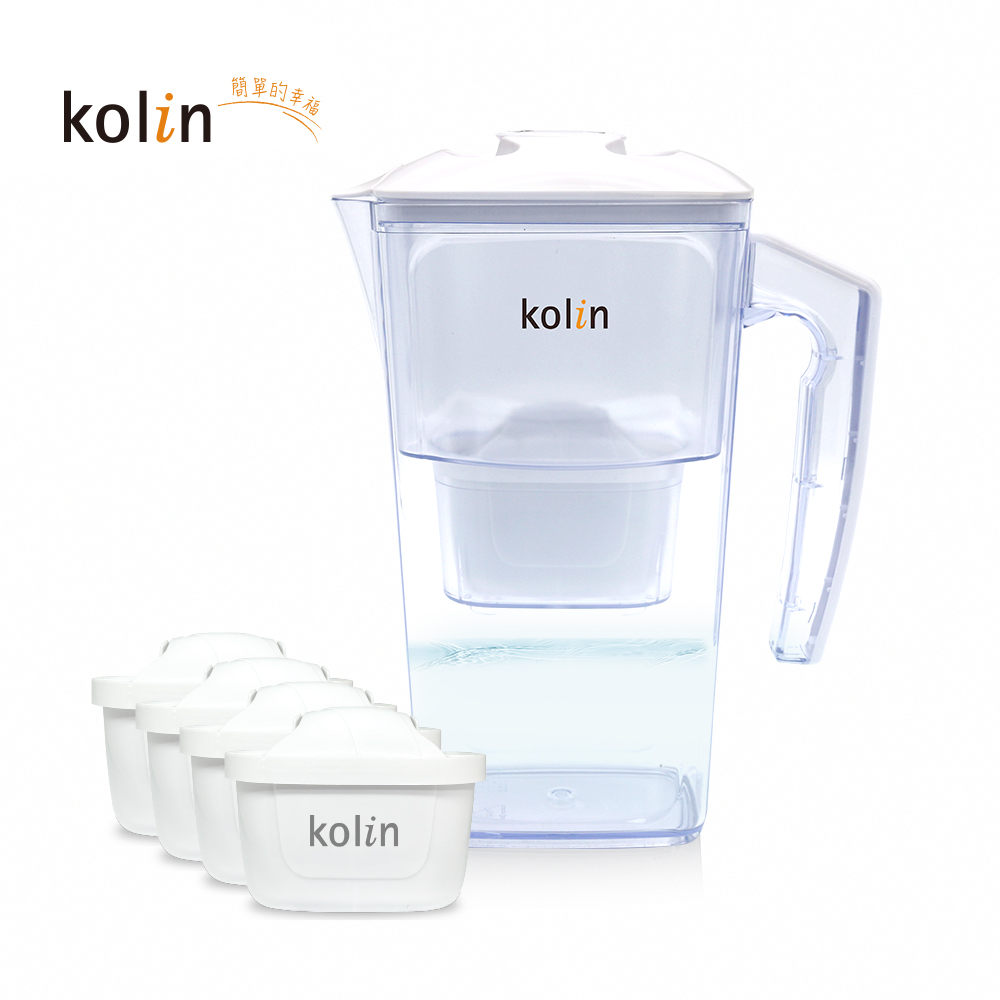 【商品名稱】【Kolin 歌林】日系窄身濾水壺 2.5L(白色)加贈四重精濾濾芯4入組(共5芯/適用Brita)