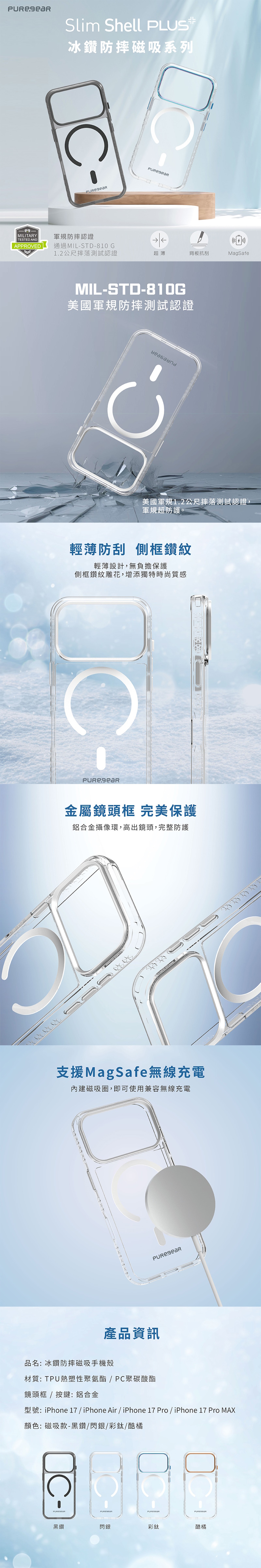 普格爾iPhone 17 Pro Max 6.9 冰鑽磁吸防摔殼