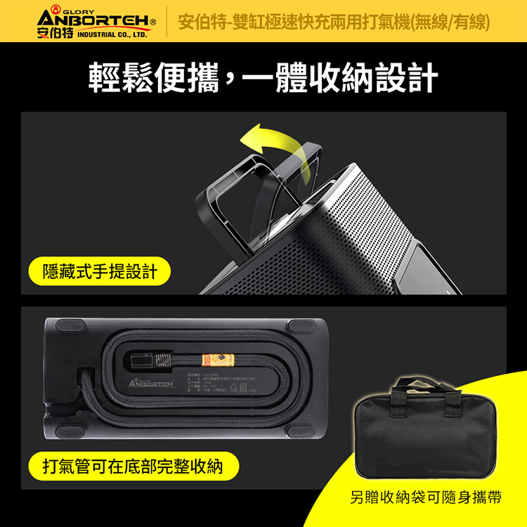 【安伯特】雙缸極速快充兩用打氣機(無線/有線)