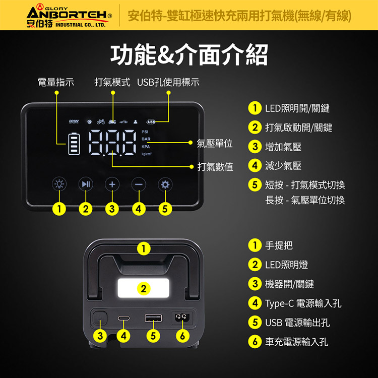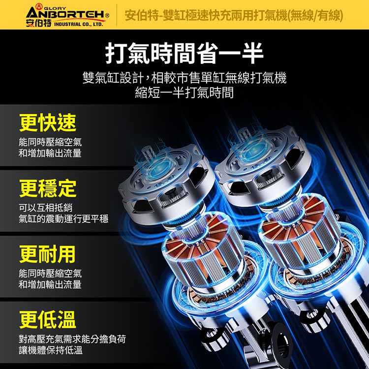 【安伯特】雙缸極速快充兩用打氣機(無線/有線) 國家認證 一年保固 (充氣機 輪胎 胎壓檢測 露營車SUV、RV、PICKUP大尺寸胎必備)