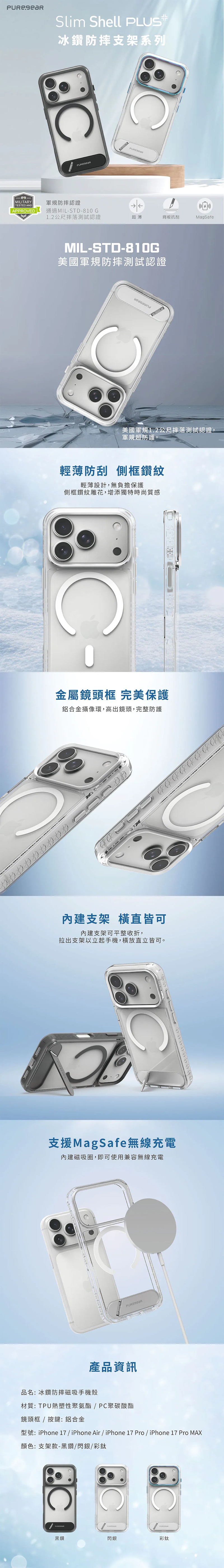 普格爾iPhone 17 Pro 6.3 冰鑽磁吸支架保護殼 黑框