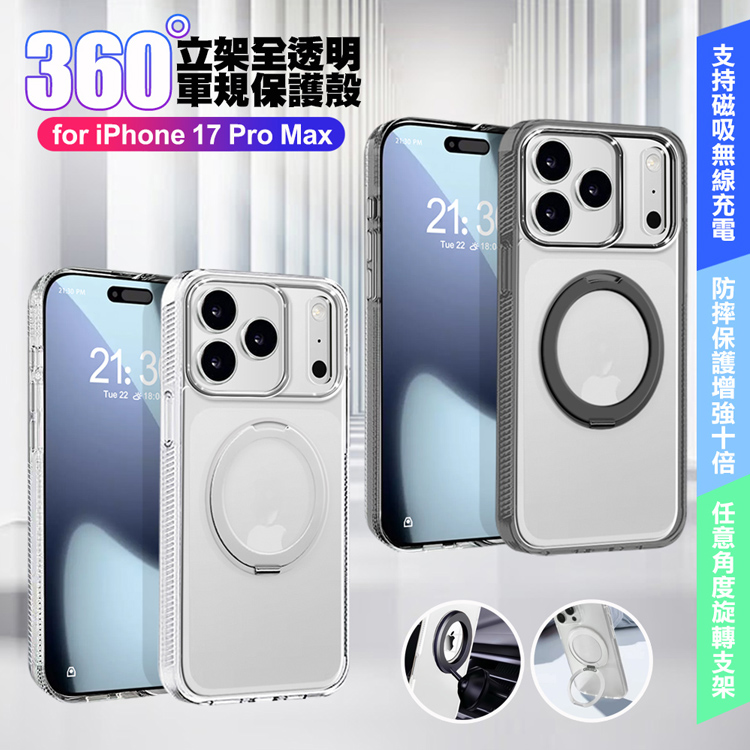 VOORCA iPhoone 17 Pro Max 豔星磁吸360度立桇全透明軍規保護殼-黑