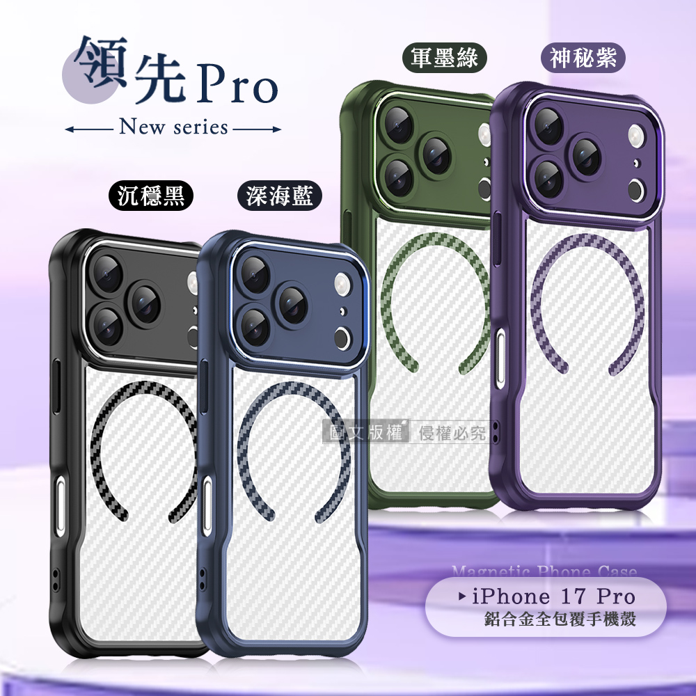 領先Pro iPhone 17 Pro 鋁合金鏡頭框 碳纖紋磁吸防摔殼 手機殼(沉穩黑)