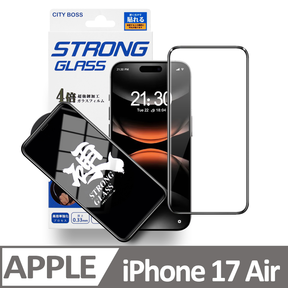City iPhone 17 Air 6.5 硬派強韌滿版玻璃貼-黑 全面貼合不進灰 鋼化玻璃製成(非柔性款) 9H抗刮耐磨 防爆緩震 高清還原 鏡頭貼厚度0.26mm 透光率99%