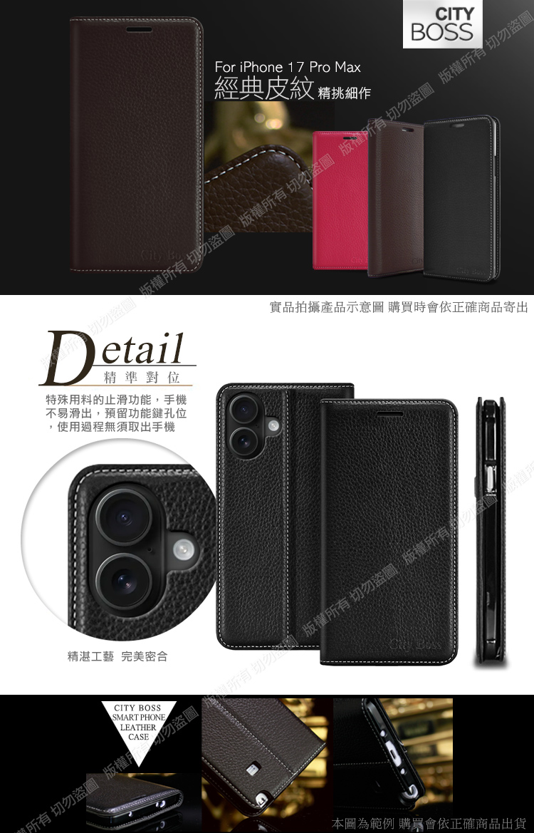 CITY BOSS iPhone 17 Pro Max 品味好感柔美磁吸皮套-黑