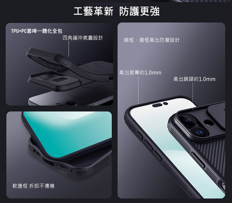 .時尚經典紋理設計,四角防摔氣囊包邊