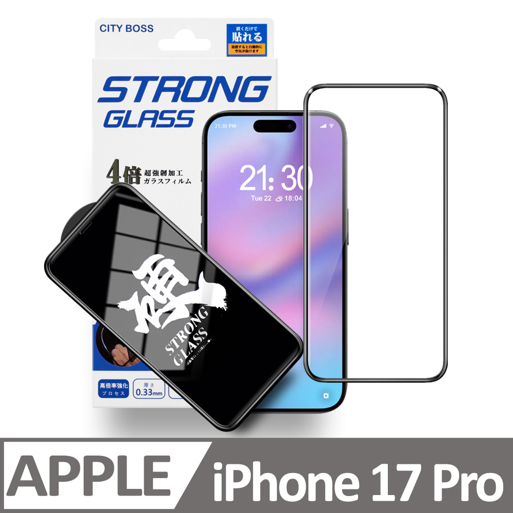 City iPhone 17 Pro 6.3 硬派強韌滿版玻璃貼-黑 全面貼合不進灰 鋼化玻璃製成(非柔性款) 9H抗刮耐磨 防爆緩震 高清還原 鏡頭貼厚度0.26mm 透光率99%