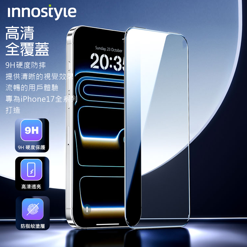 innostyle iPhone 17/17Pro/16Pro 9H 高清鋼化玻璃保護貼膜 貼膜輔助定位器 CryStal系列