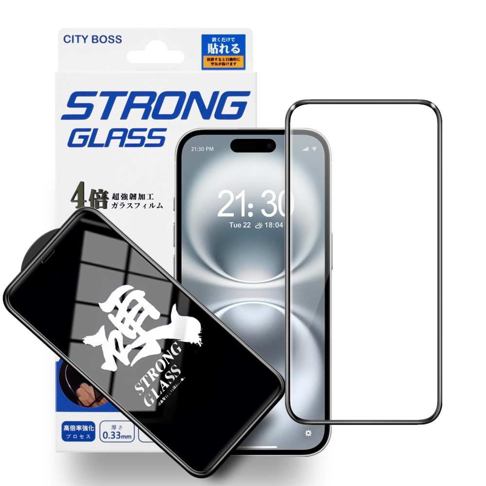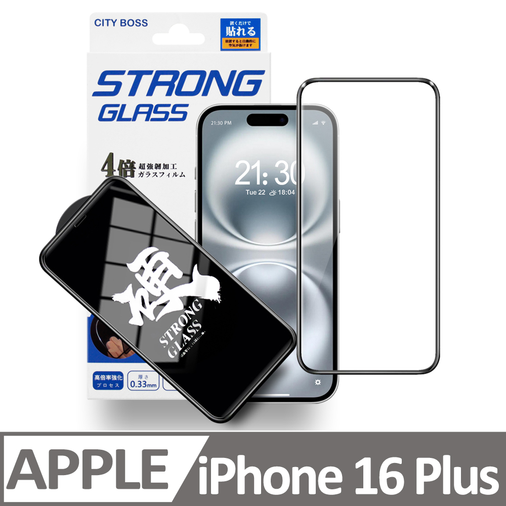 City iPhone 16 Plus 6.7 硬派強韌滿版玻璃貼-黑 全面貼合不進灰 鋼化玻璃製成(非柔性款) 9H抗刮耐磨 防爆緩震 高清還原 鏡頭貼厚度0.26mm 透光率99%
