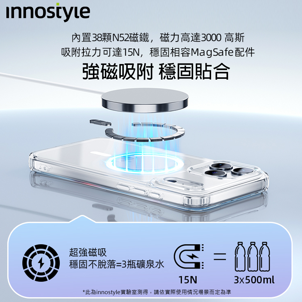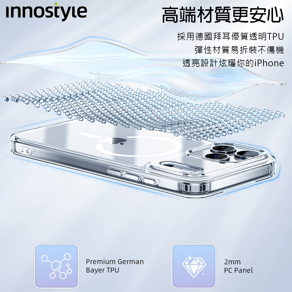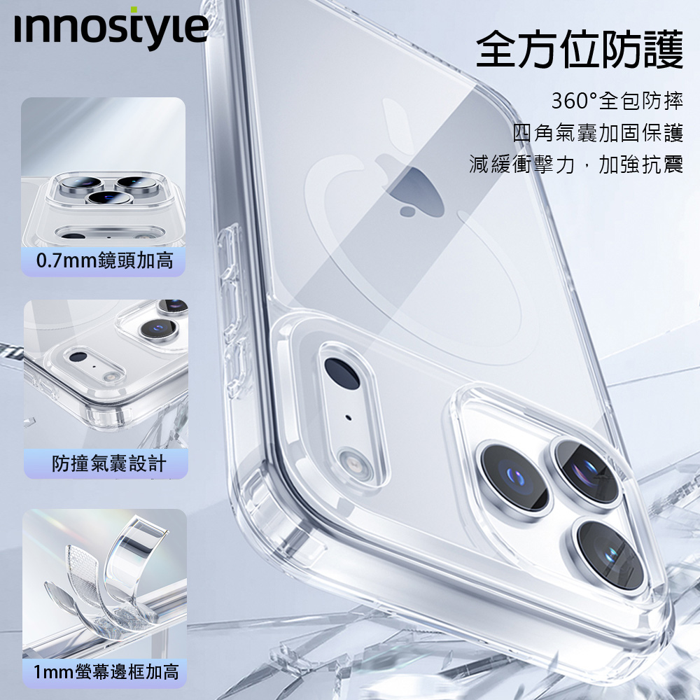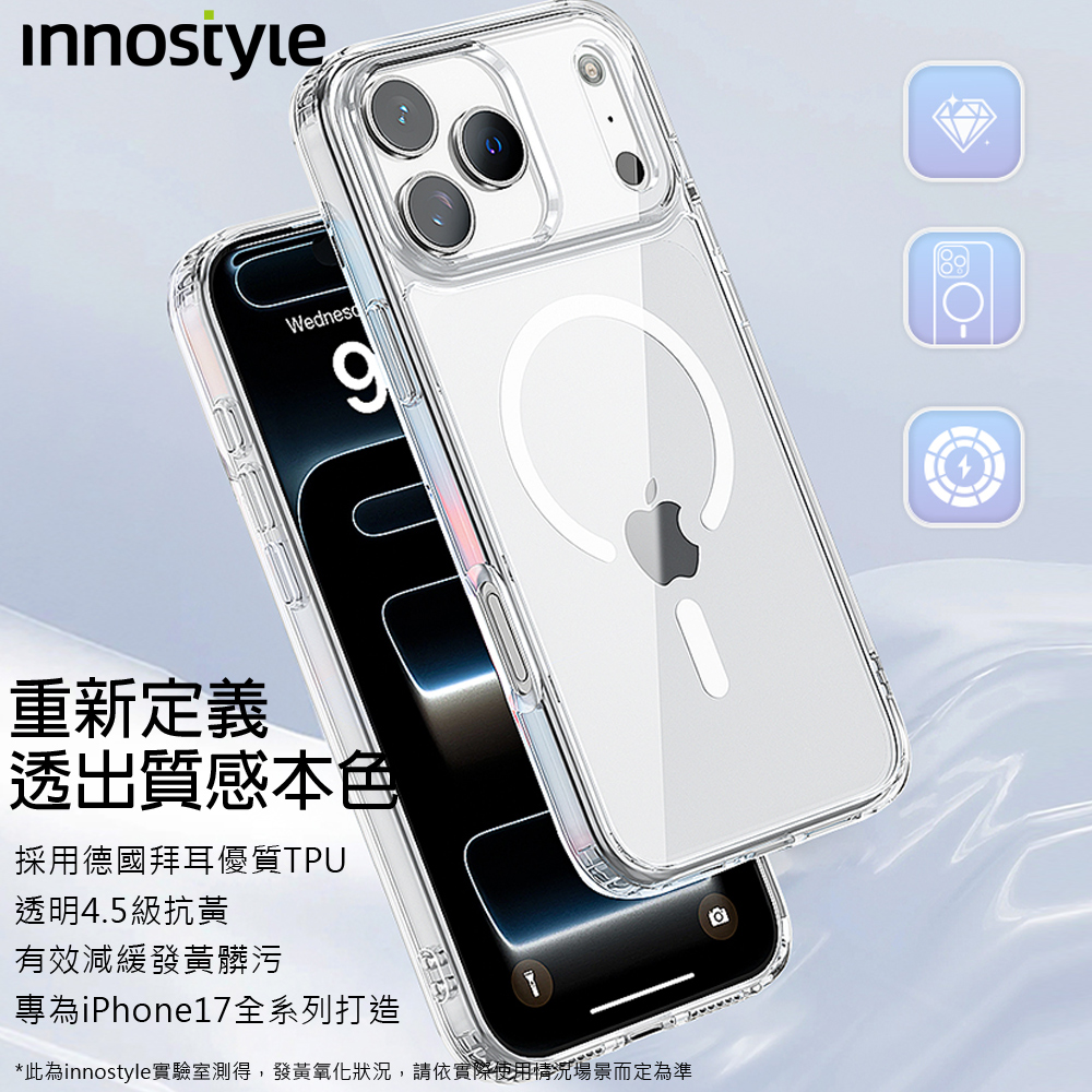innostyle iPhone 17 磁吸氣囊防摔手機保護殼 4.5級抗黃 德國拜耳 Crystal系列 MagSafe