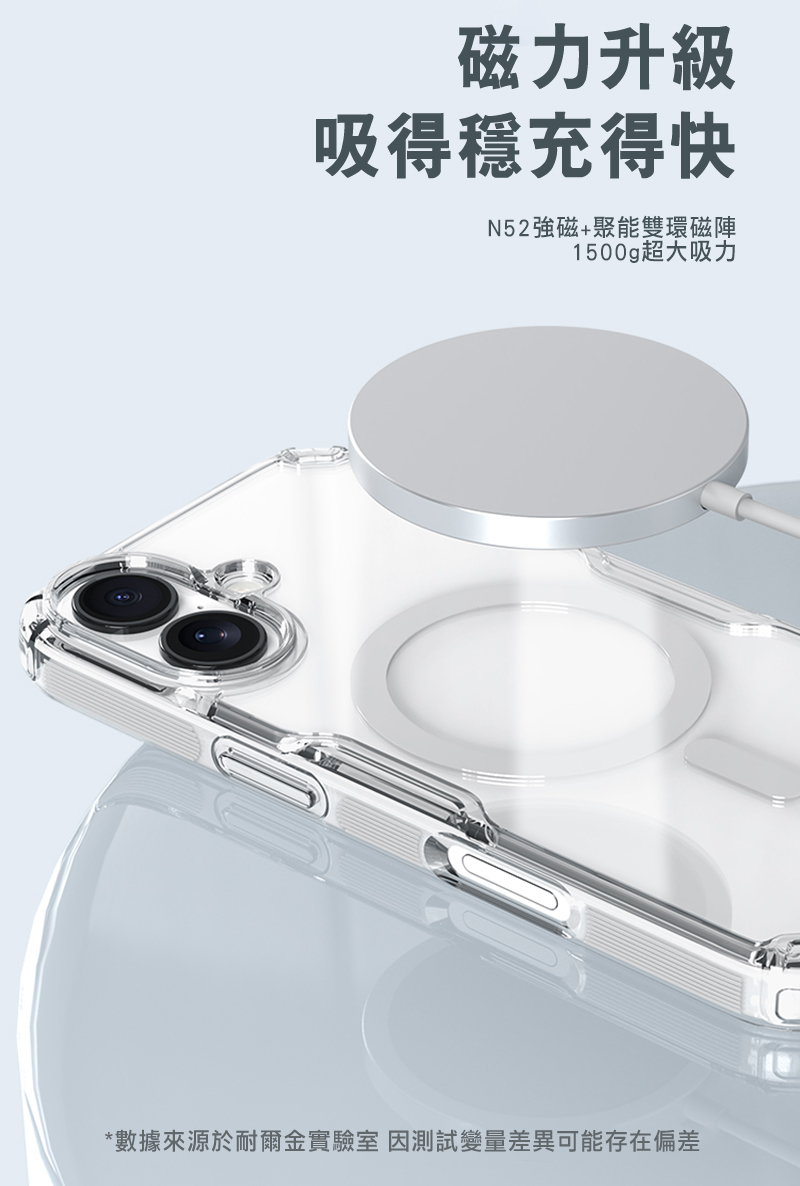 .磁吸功能,可讓手機吸附 MagSafe 支架配件或皮革卡包