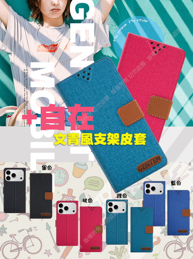 GENTEN iPhone 17 Pro 6.3 自在文青風支架皮套-藍